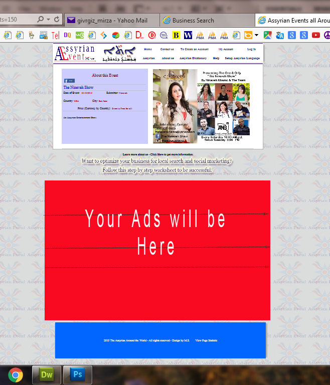 This site was created to promote Assyrian events world-wide. We have tried to make it very easy for users to add their events to the site. We welcome your suggestions/comments about how we can improve the website. Please send us your thoughts and comments.